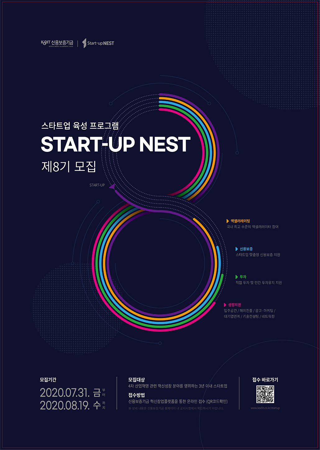 제 블로그에서 다뤘던 신용보증기금 스타트업 네스트 준비 및 선정 노하우를 읽어 보시면 준비하시는데 많은 도움이 되실 겁니다. 이번에도 전국에 100개 기업을 뽑네요. 8월 19일까지 모집합니다.