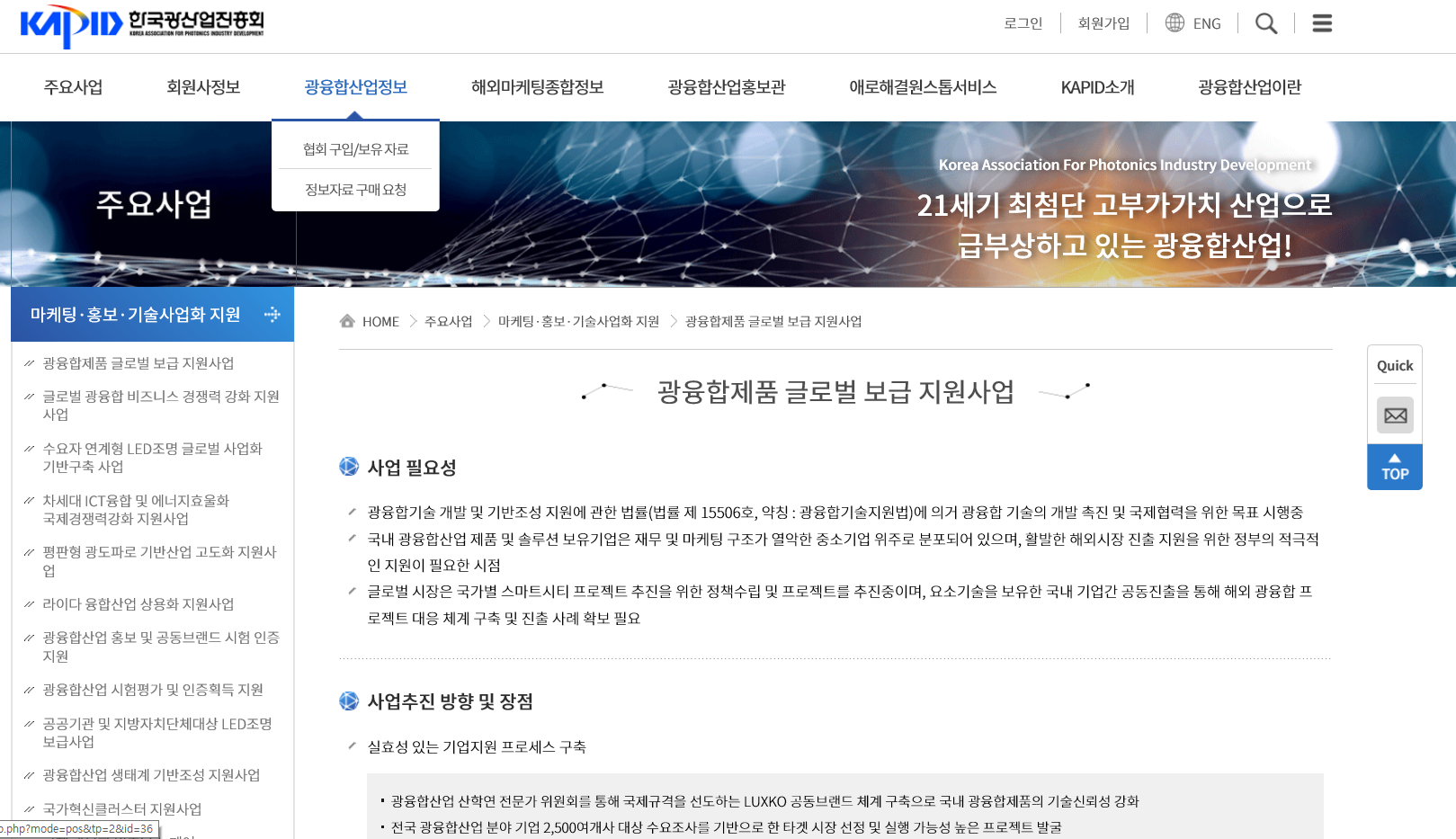광산업진흥회의 다양한 지원사업 목록은 아래와 같습니다.