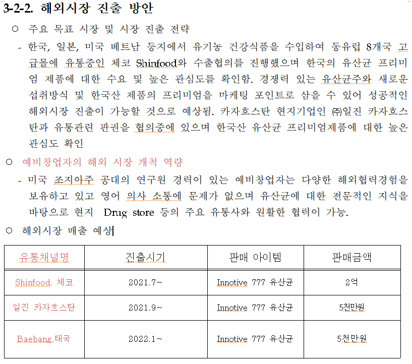 절대 금지해야할 표현을 알려드릴께요. 사업기간동안 수요처, 유통채널을 찾아보겠다고 하면 안됩니다. 미리 준비되어 있어야 됩니다. 구체적 협력 회사명, 국가명을 미리 준비하세요. 그리고 그 나라에서 관심을 보이는 이유도 서술하시기 바랍니다. 구체적 판매금액 및 구매의향서까지 준비하시면 좋습니다. 구매의향서보다 구매계약서가 있으면 더욱 좋습니다.