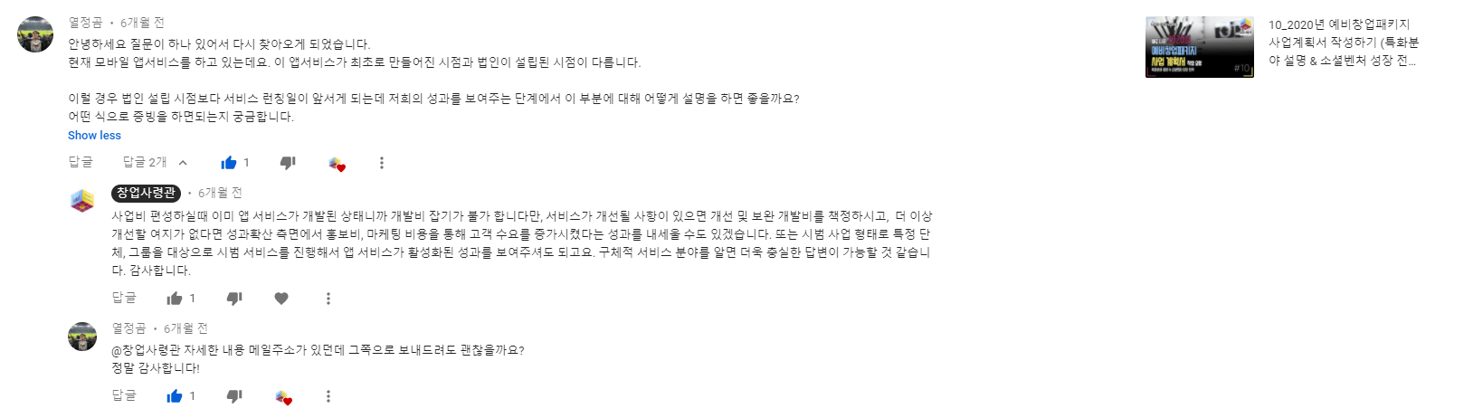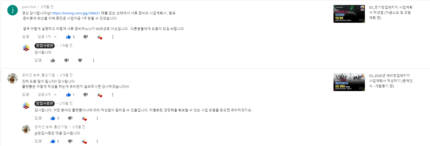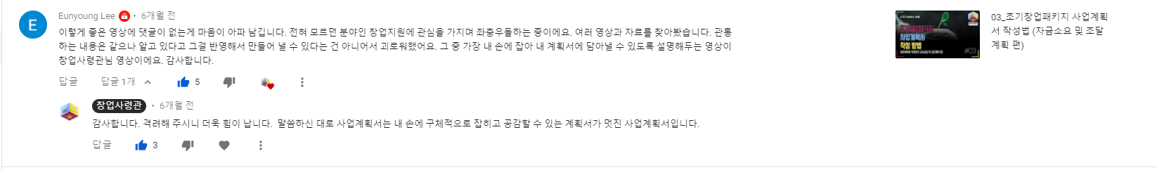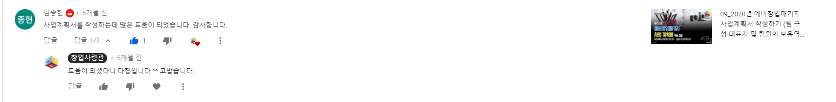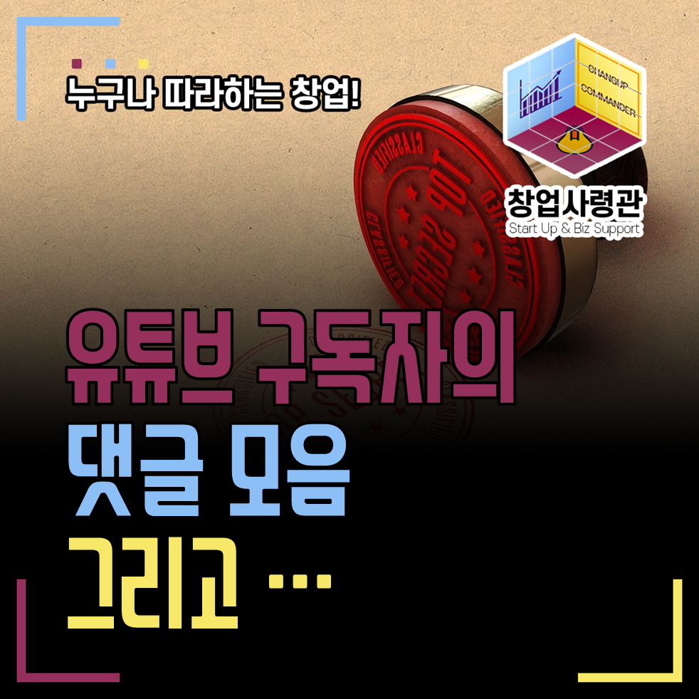 창업사령관 유튜브에 올라온 댓글 모음입니다. 올해는 유튜브에 예비창업패키지, 초기창업패키지에 대한 영상 위주로 올렸습니다. 도움이 되셨다는 분들이 계셔서 다행입니다. 저에게 큰 힘이 됩니다~