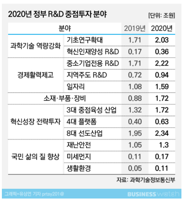 연구개발 예산을 많이 갖고 있는 부처명은 알아두시길 바랍니다. 과학기술정보통신부가 8조원, 산업부가 4.21조원, 방사청(방위산업 연구개발 파트)이 3.9조원, 교육부가 2.2조원, 중기부가 1.5조원입니다. 아래 기사를 참조하세요.