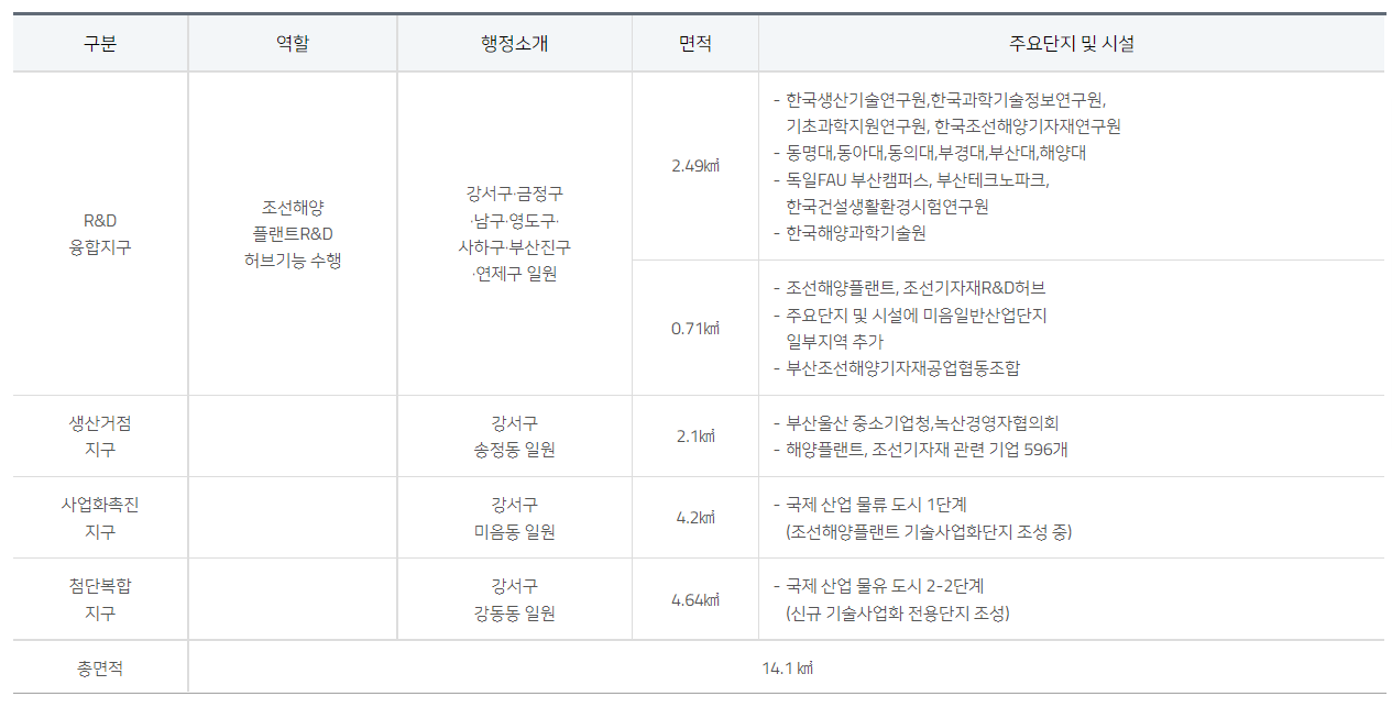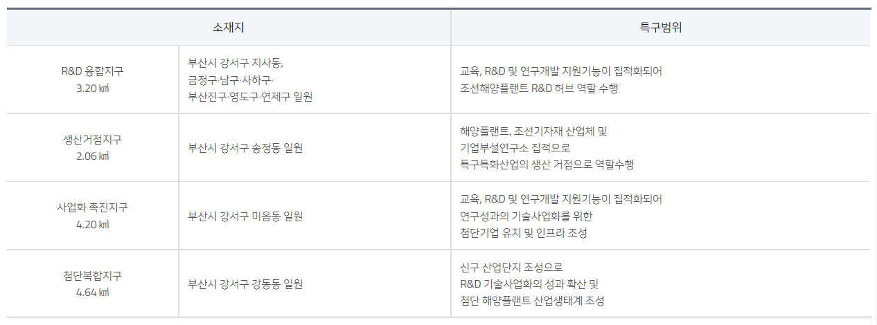 다음으론 강소 특구에 대한 설명인데요, 지정 범위 및 특화 분야(특구에서 집중 육성)를 유심히 보세요.