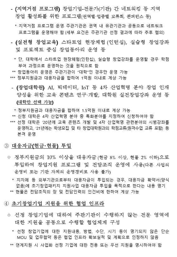 주관기관에 선정되기 위해서는 대학 내 창업지원 전담조직도 갖추어야 하며, 대학에 창업자 육성을 위한 투자 조직 및 자금 확보(선정된 창업팀 및 초기 기업 투자용)가 되어 있는 학교라야만 신청이 가능합니다. 주요 평가 항목은 창업지원 비전, 창업지원 인프라 퀄러티, 기술창업 지원 실적, 기업 성장 지원 계획, 특화형 프로그램 등이 있습니다. 즉 예비창업자 및 초기기업에겐 꿀같은 지원 프로그램 및 인프라네요. 아래 공고문에 명시된 주관 기관의 신청 요건입니다.