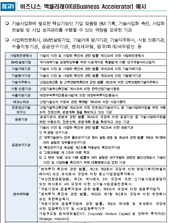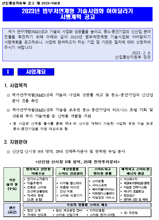 먼저 범부처연계형 기술사업화 이어달리기 사업이란 과제명에서 보듯이 정부 여러 부처의 연구개발사업(2억원이상과제/1년)의 사업화 성공률을 높이기 위한 지원사업입니다.