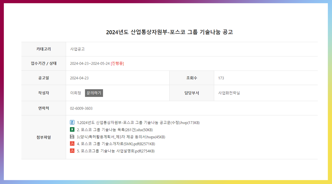 이번 포스팅은 2024년도 포스코 그룹 무상 기술이전 공고에 대한 설명입니다.