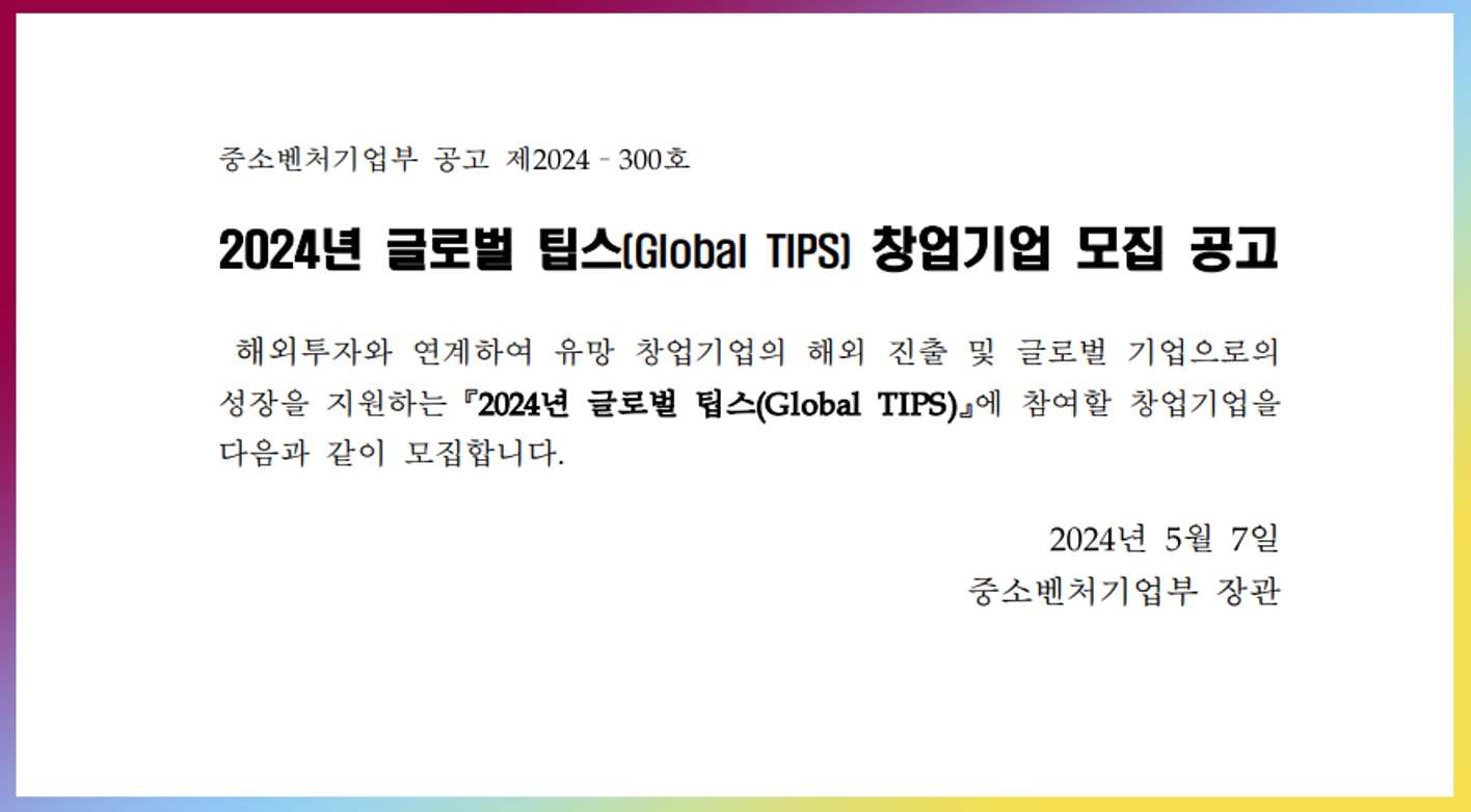 | 2024년 처음 도입된 글로벌팁스(최대 6억원 지원) 20개사 선정 및 내년 준비 팁 (7) | 2024.09.07 |