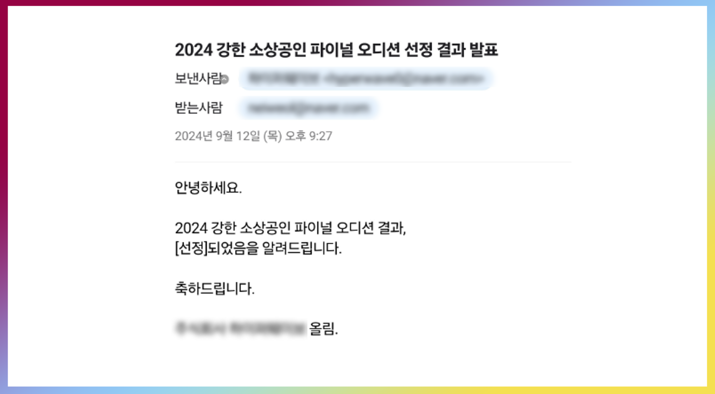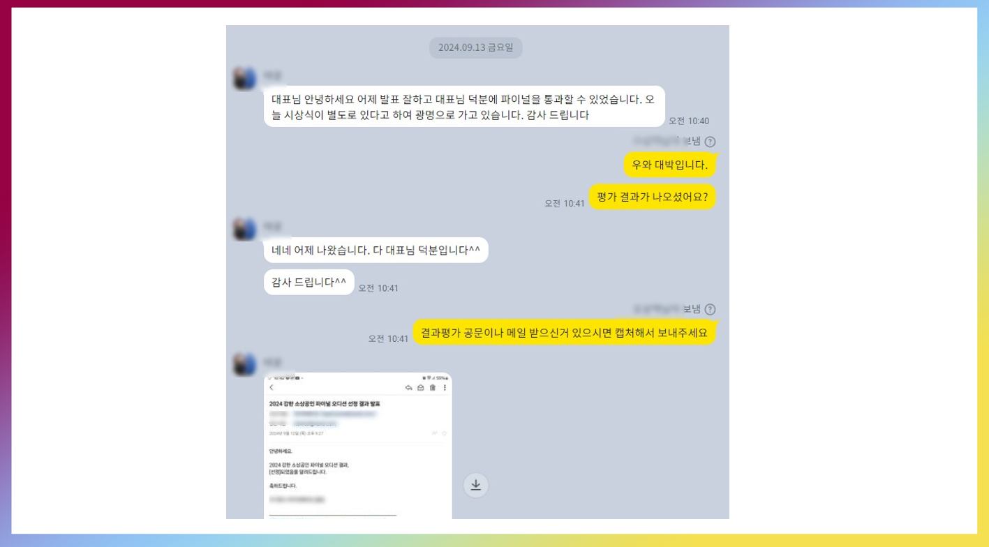 이번에 저한테 컨설팅을 받으셨던 분이 좋은 소식을 알려주셨네요. 최종 선정 소식입니다.