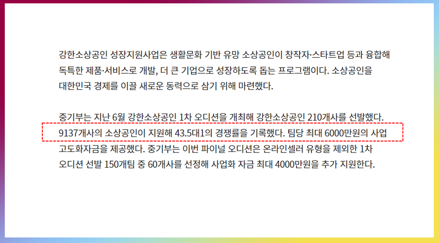 올해 엄청나게 신청 회사가 몰렸다네요. 9137개사의 신청을 했었고 최종 60개사가 선정되었습니다.
