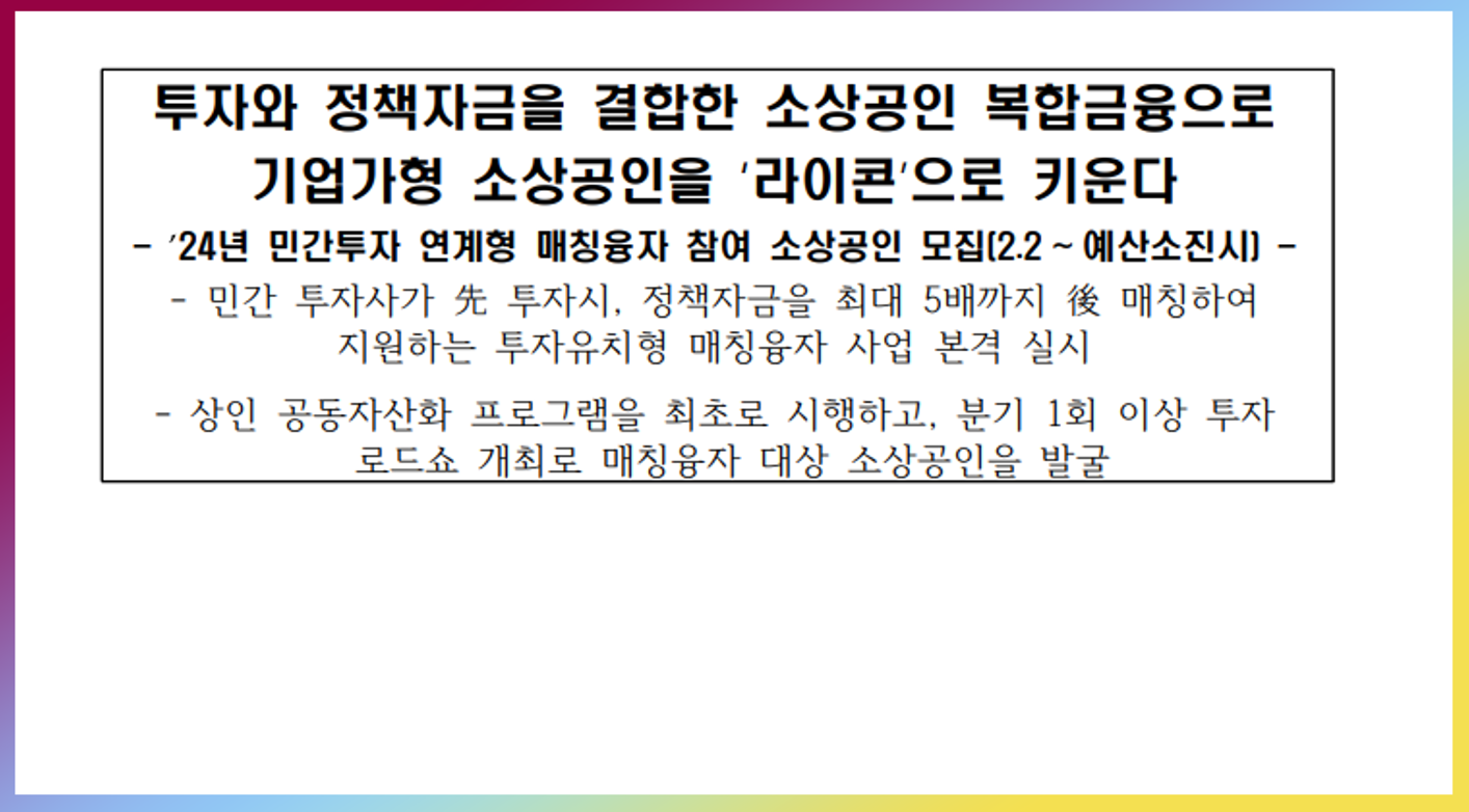 | 부울경(부산, 울산, 경남) 대경(대구, 경북) 대전 충청권 소상공인을 위한 투자유치 전략(라이콘 펀드, 립스 및 스케일업 립스 준비) (10) | 2024.10.05 |