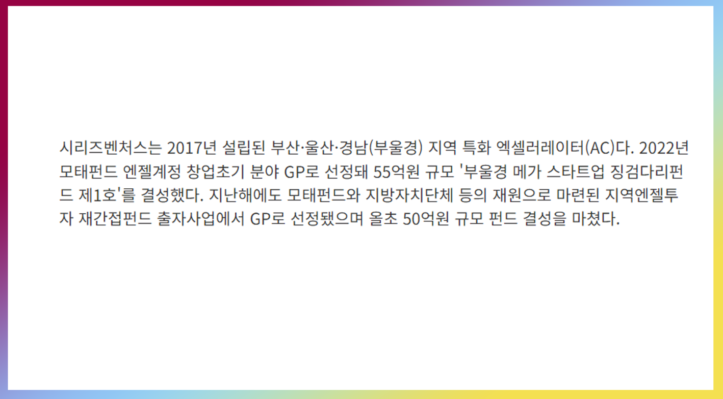시리즈벤처스는 부산 울산 경남 지역의 소상공인을 지원하기 위한 펀드입니다.