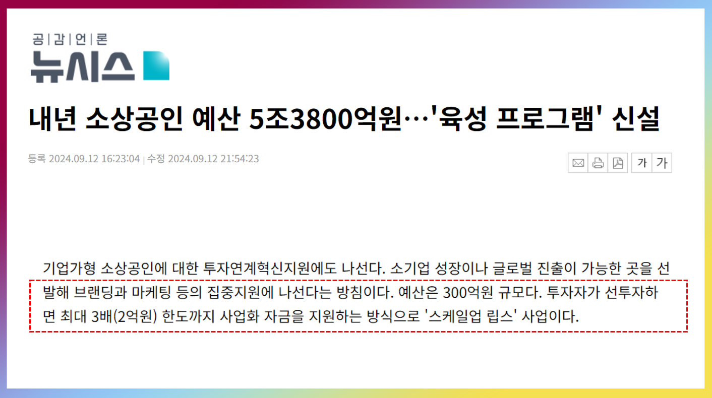 중기부에서 야심차게 준비한 소상공인 투자 연계 지원사업 " 스케일업 립스"에 대해서 이전에 포스팅한적 있습니다. 스케일업 팁스와 유사하게 명명되었네요.