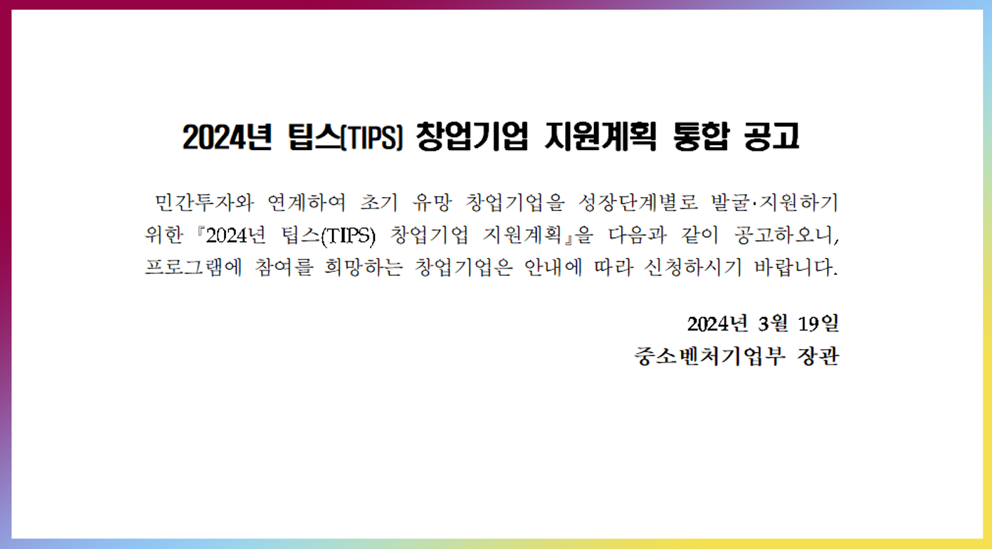 아직 아래와 같은 창업기업 모집 공고는 뜨지 않았습니다. (아래는 작년 공고문)