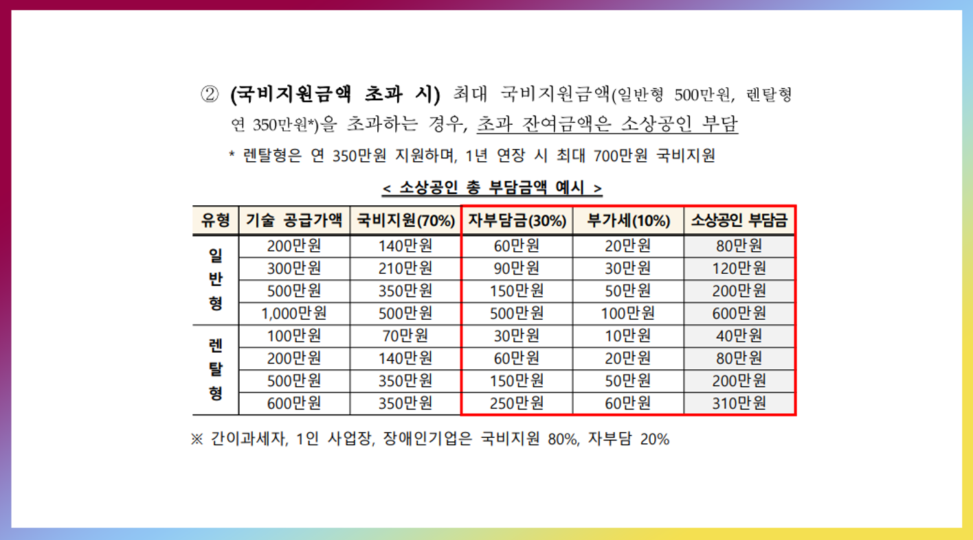 국비 지원한도가 500만원이라서 초과 잔여금액은 소상공인이 부담합니다.