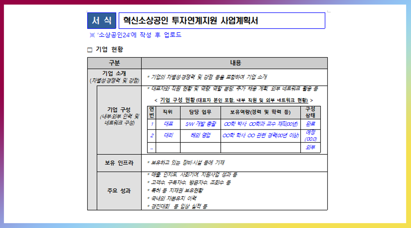 민간 운영사 투자제안서 양식도 있습니다. 민간 운영사 별로 독자 양식(ppt 버전 등)을 요구할 수도 있을 겁니다.