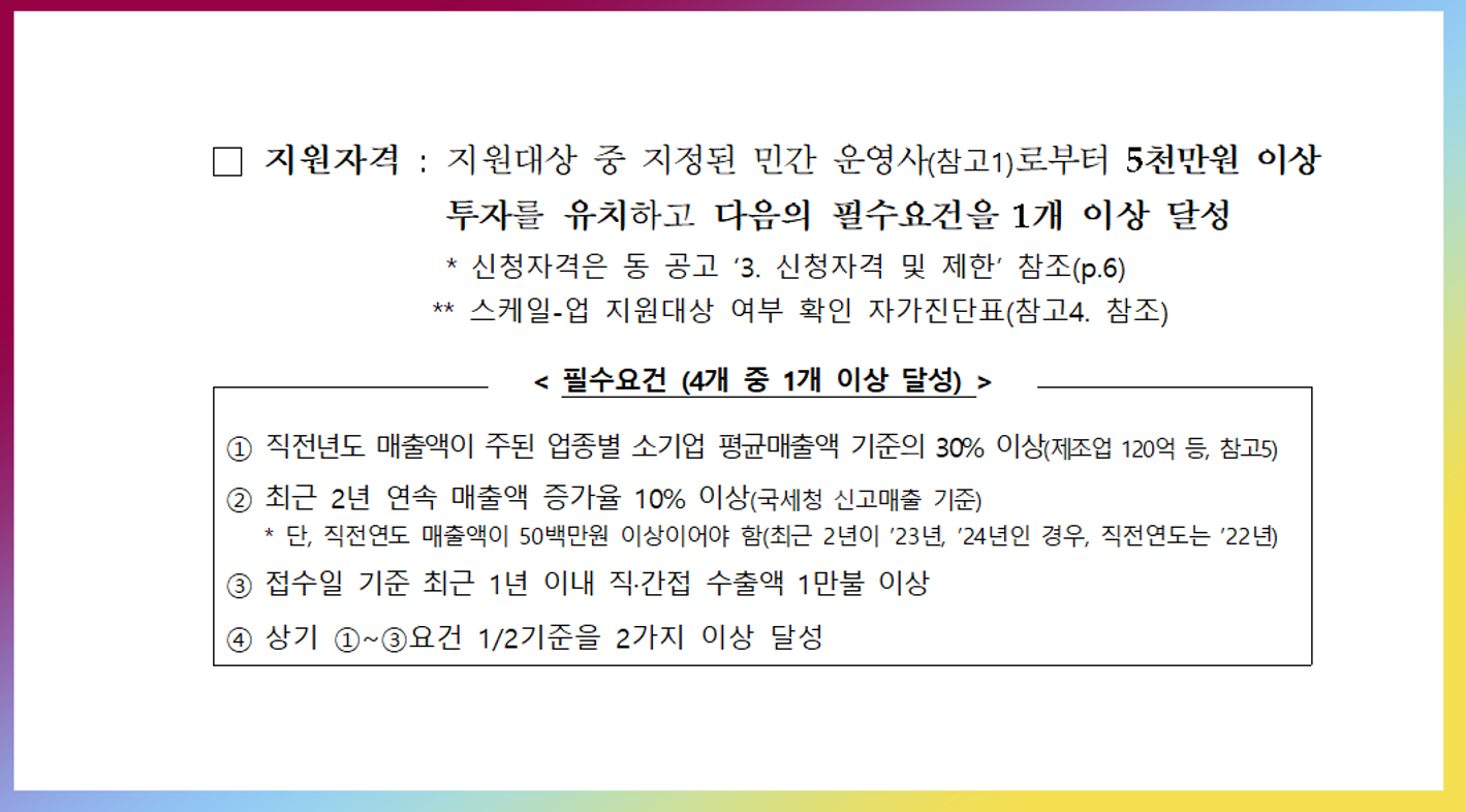 스케일업의 경우는 아래 네 가지 필수 요건 중 1개 이상 달성해야 합니다.