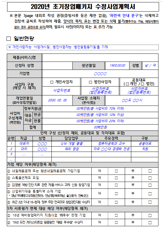 아래는 수정사업계획서 표지입니다.